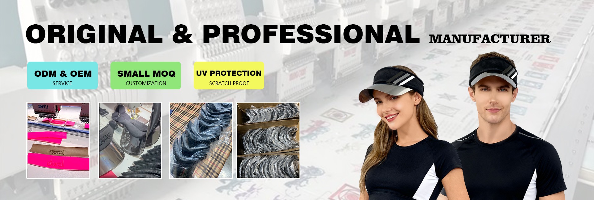 Özel Logo işlemeli baskılı pamuk plastik UV güneşlik şapka iş uygulanabilir ışık beyzbol şapkası kadınlar erkekler için boş üst
